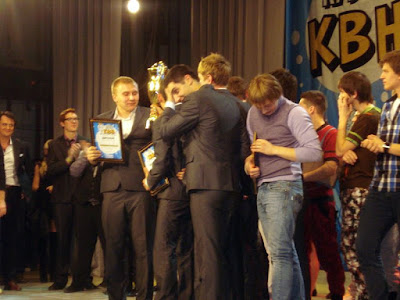 Закончился КВН. Пришло время назвать победителей. Члены жюри вышли на сцену. По традиции было сказано несколько приятных слов. Многие команды получили грамоты за участие. Но только три из них стали победителями. Итак, третье место - Сборная Нефтекамска "Команда с традициями". Второе место - "Сергеичи" из города Уфы.
