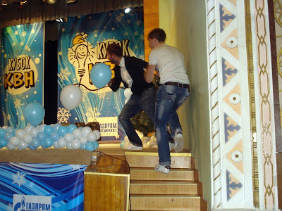 Интересная и оригинальная была сценка "Битва танцоров и стриптезеров" На сцене они вытворяли просто чумовые вещи. Это надо было видеть. Они сыграли последними, а после них последовало выступление гостей из города Москвы.