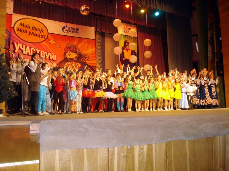 Команды вышли на сцену. Между ними протиснулся ведущий Фаиль Исхаков. Мы сегодня завершаем наш самый добрый проект этого года «Мой двор, моя улица», финальный этап. Дружные болельщики с плакатами сегодня болеют за тех, кто сегодня будет вместе с нами на празднике «Мой двор, моя улица», по итогам которого мы узнаем, кто станет победителем состязания дворов. Давайте поприветствуем участников.