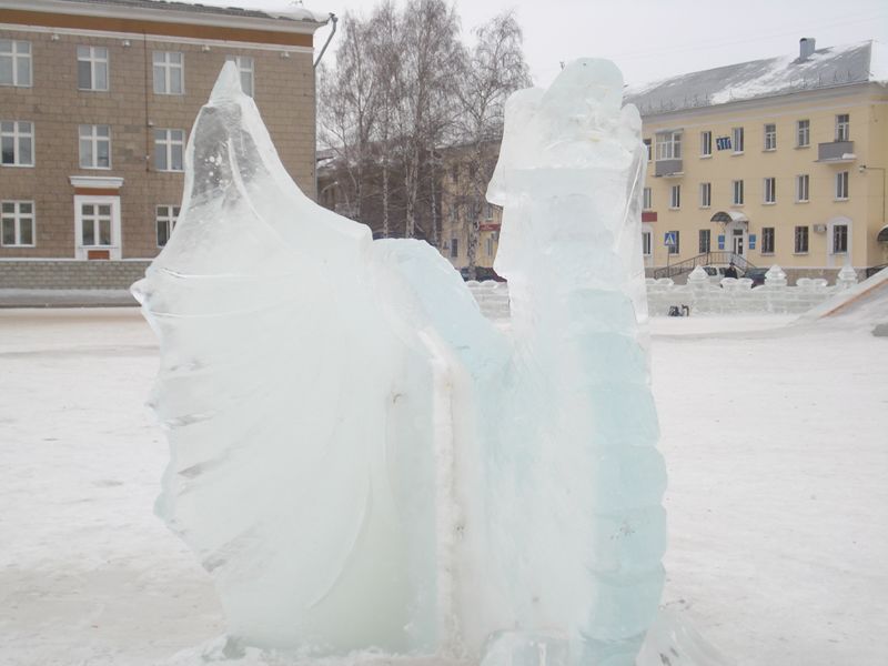 В Салавате, на площади Ленина построили ледовый городок. Небольшой по размеру. Сделано все изо льда. И одна лишь единственная, мелкая горка. Помню, в детстве горки были гораздо больше, настоящие гиганты из снега. Сейчас все совсем не так.