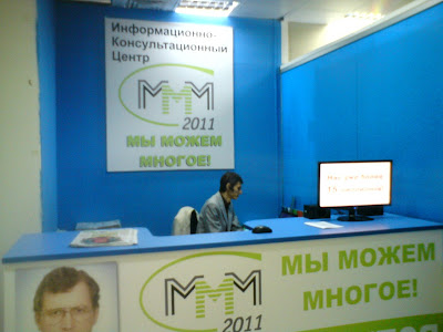 Слухи оправдались. На первом этаже, слева от главной лестницы, располагается информационно-консультационный центр "МММ-2011". Человек, сидевший за компьютером, был рад, что к нему пришли за информацией, и любезно рассказал о новой пирамиде. Зовут его Игорь Беркут. Известный тамада Салавата.